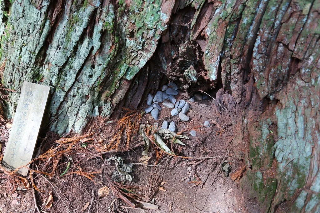 One of the things we do during our Forest Bathing session in Germany is to place a stone at the base of a tree as a form of an offering. I was very pleased to see that our “own” idea has been practiced in Japan for decades. Maybe the meaning is slightly different but in essence it is an offering to the tree.